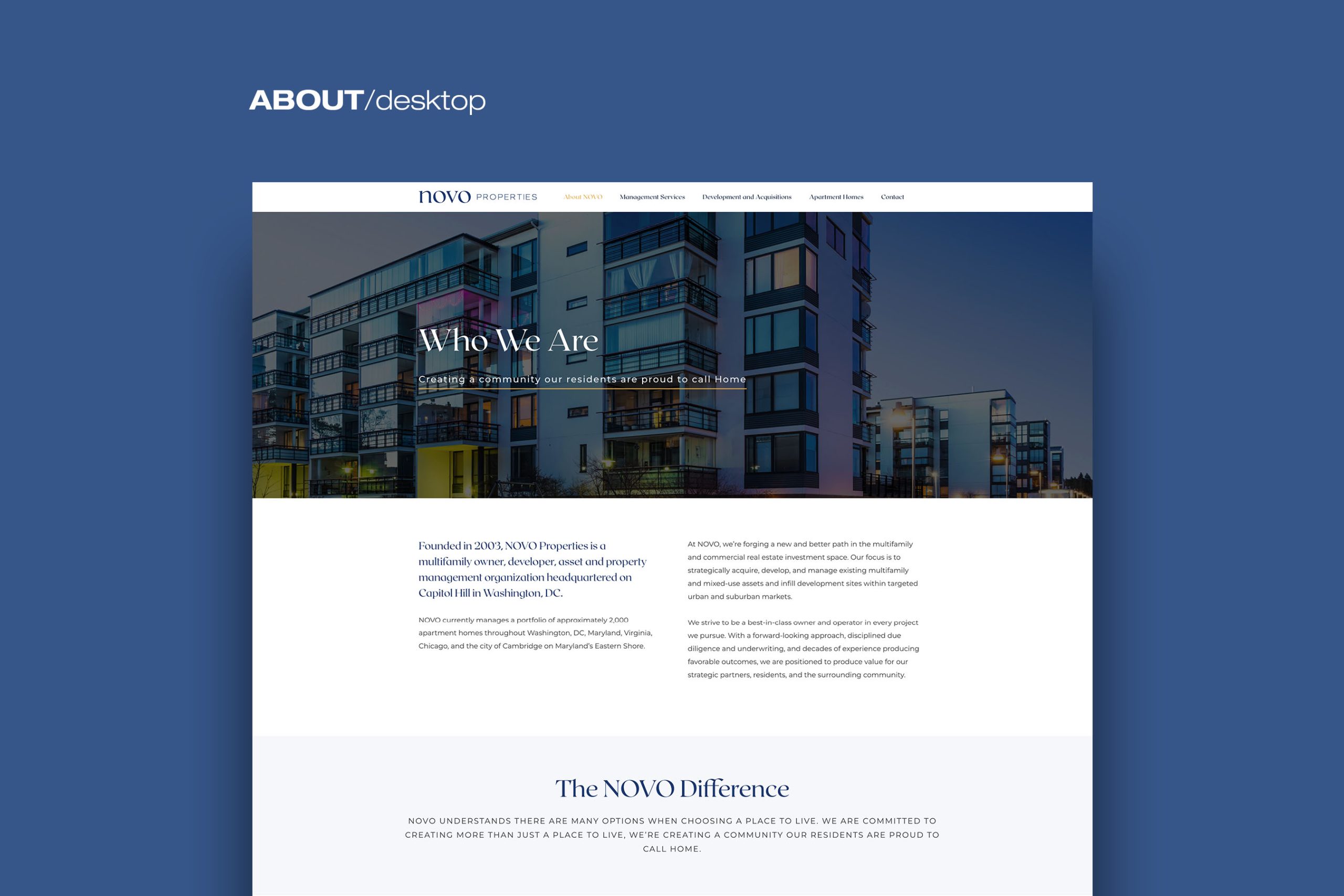 FORMA by MOYA completed a brand refresh and website redesign for NOVO Properties that reflects their continuous improvements and competitive advantage in the real estate market.